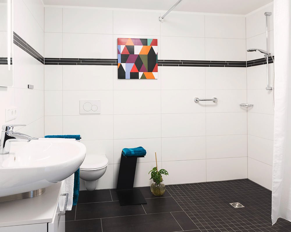 - Bäder mit bodengleichen Duschen und hochwertigen Sanitärobjekten